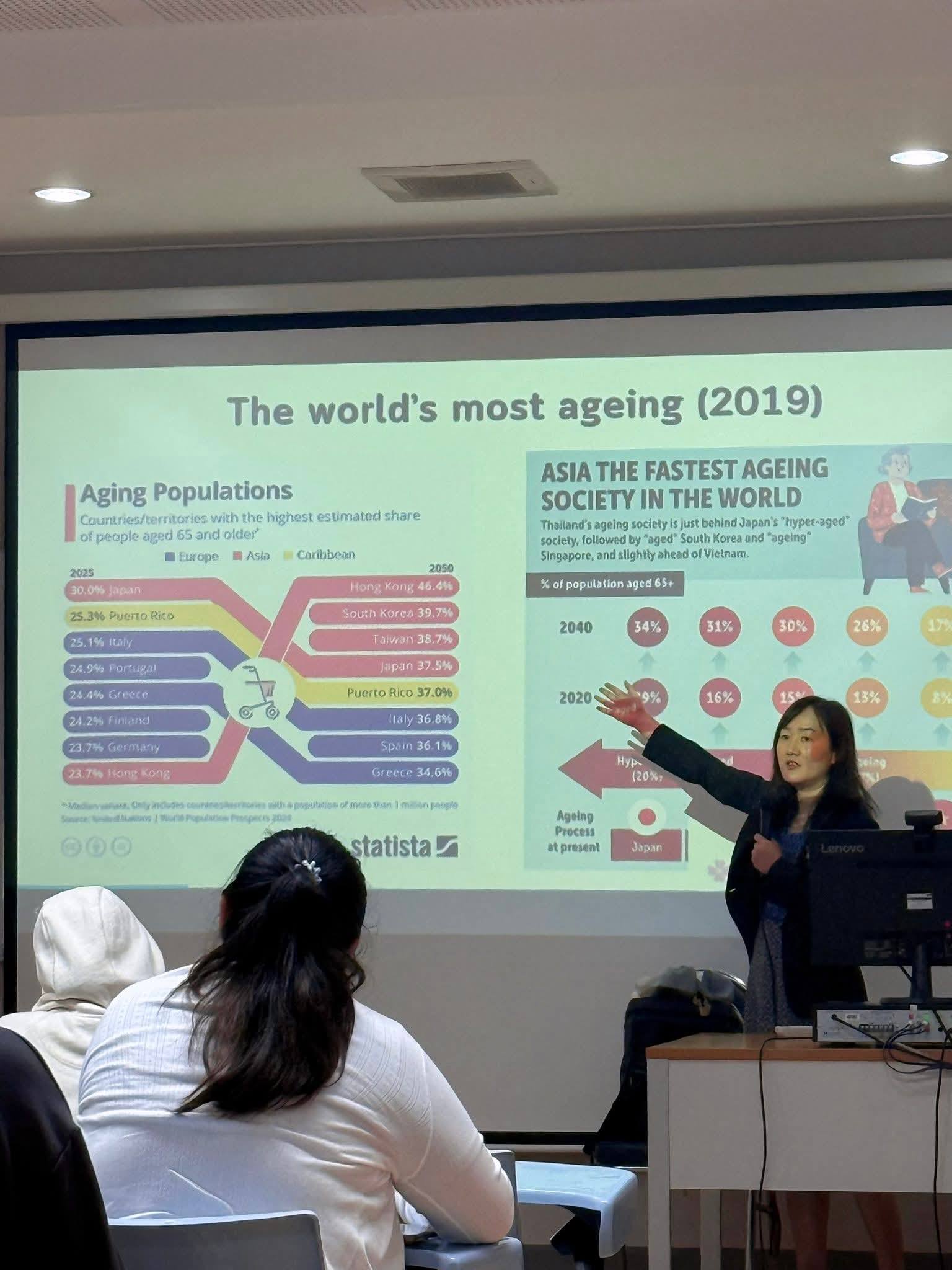 Her lecture, “Global and Local in an Ageing Society: Lessons from Japan and Thailand,” offered a comparative perspective on demographic transitions, examining how aging societies are shaped by policy frameworks, care systems, and community responses. The session engaged students in critical discussion on social protection, long-term care, and the challenges of rapidly aging populations in Asia.