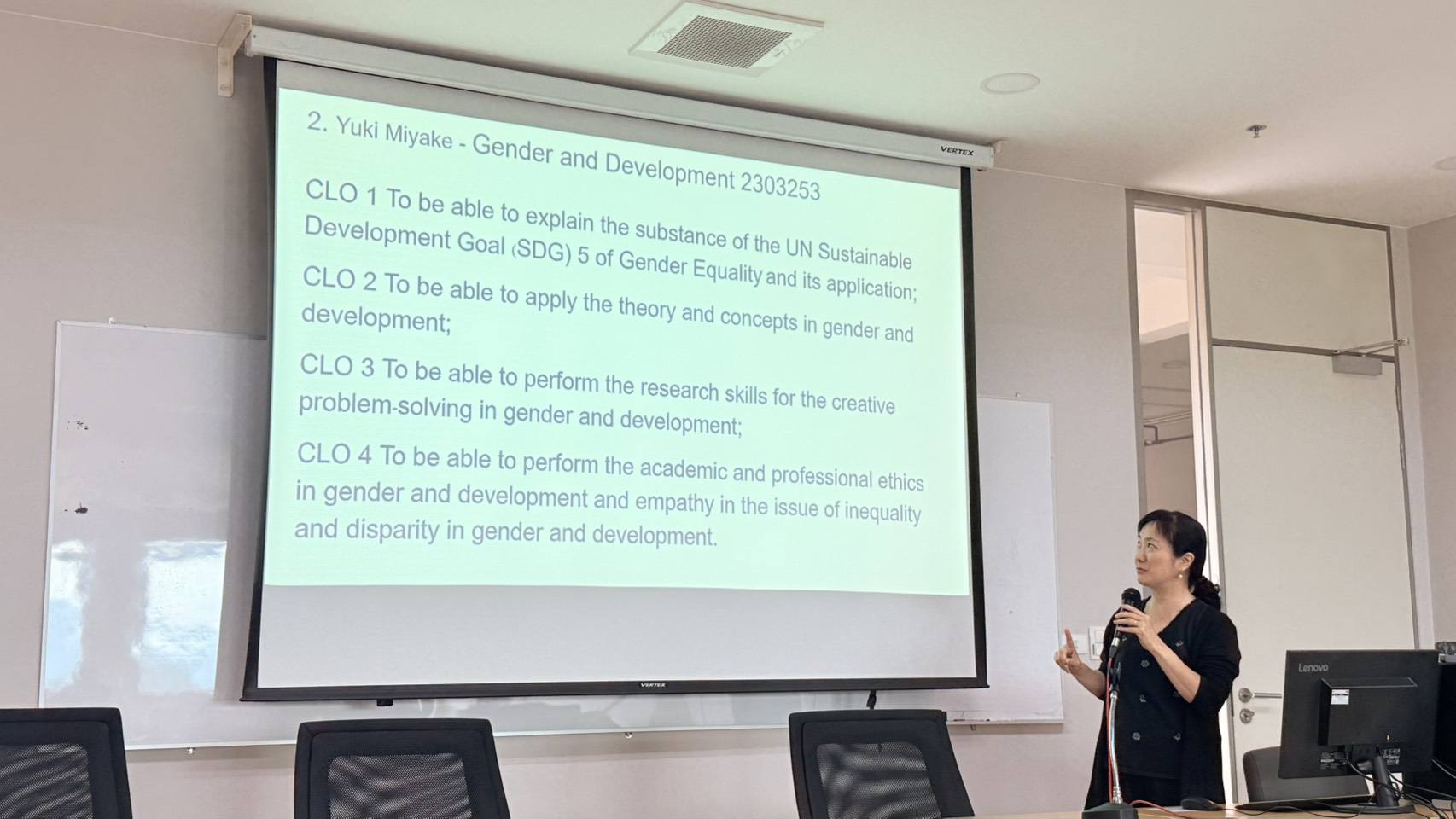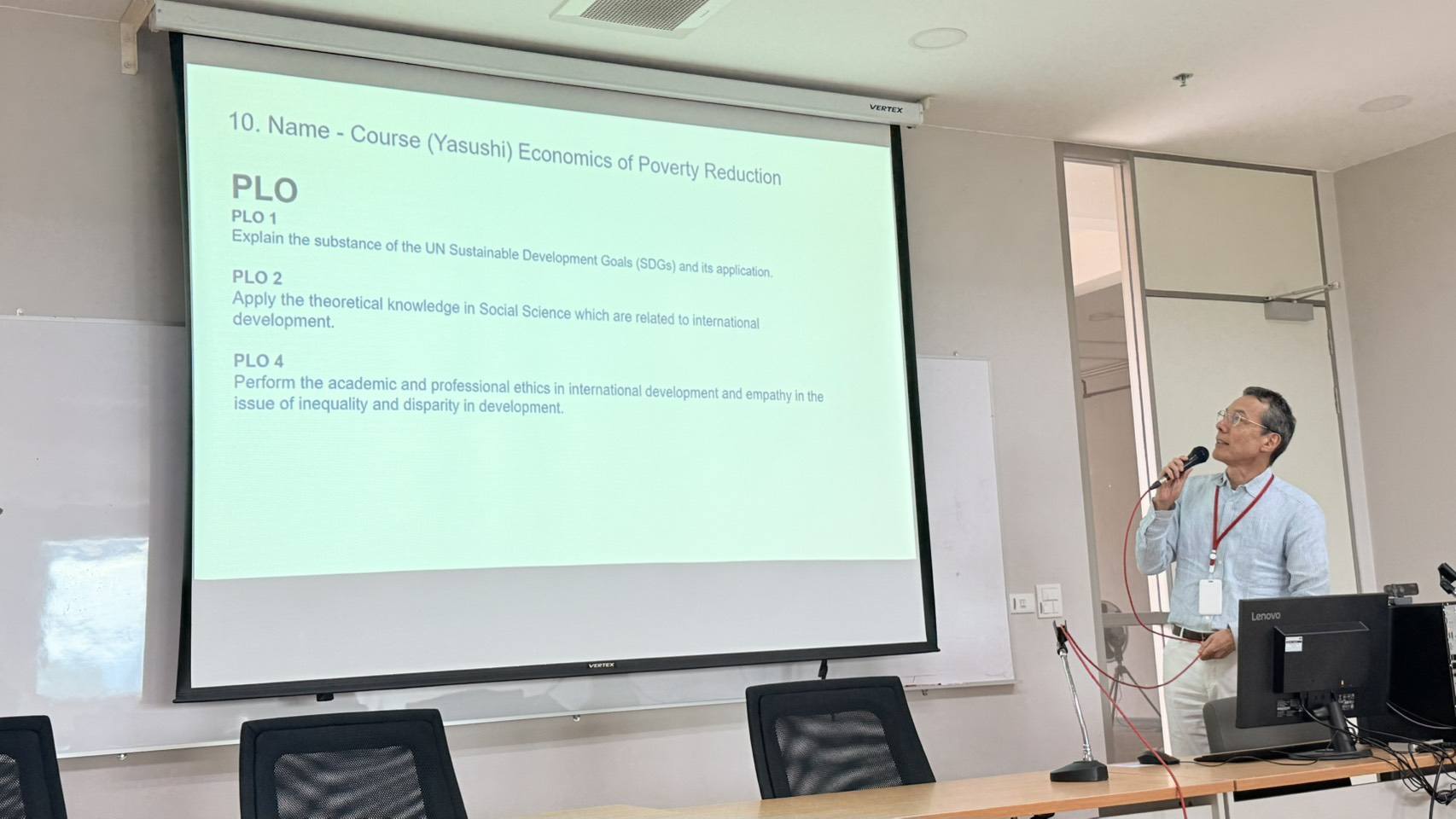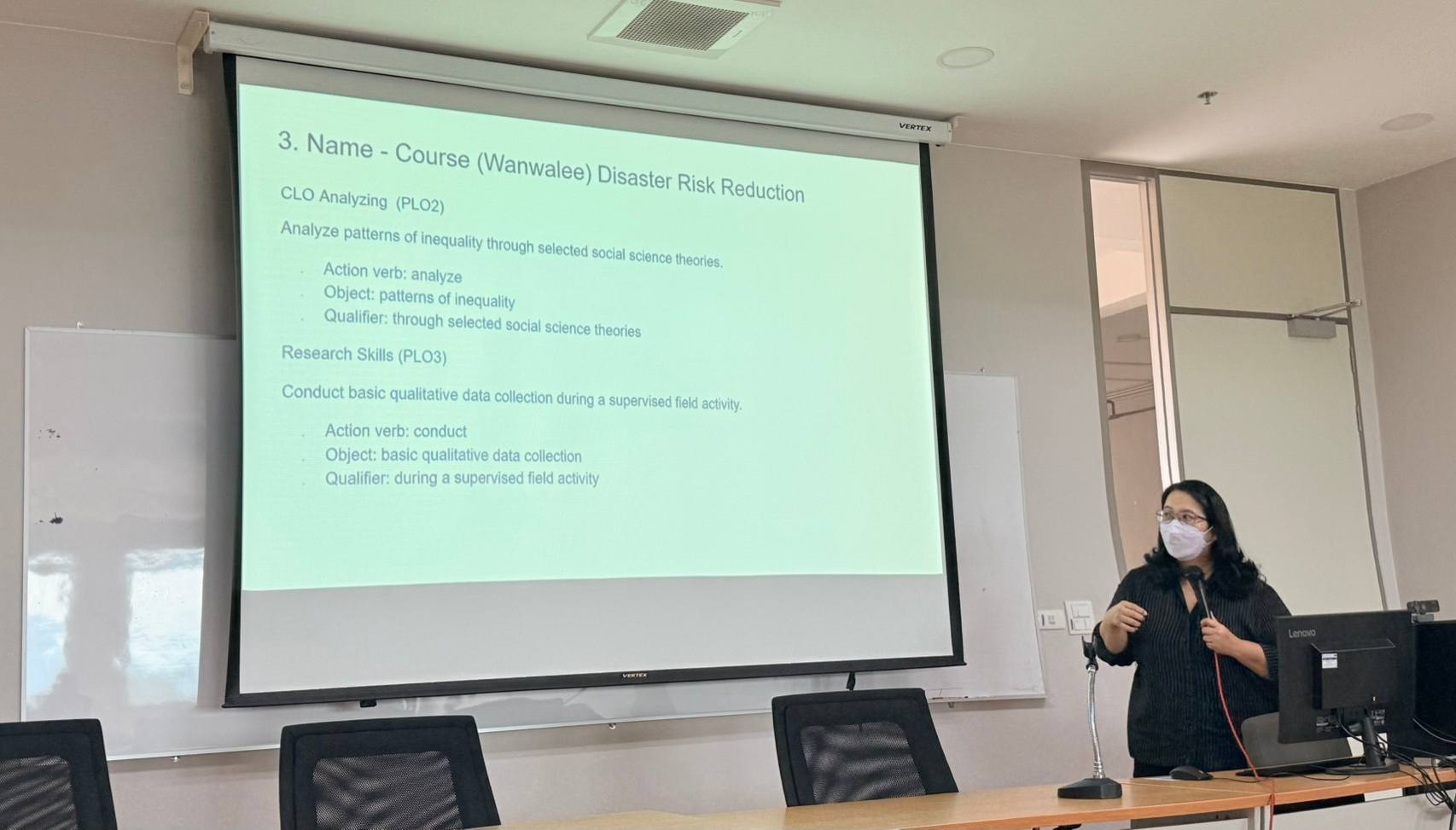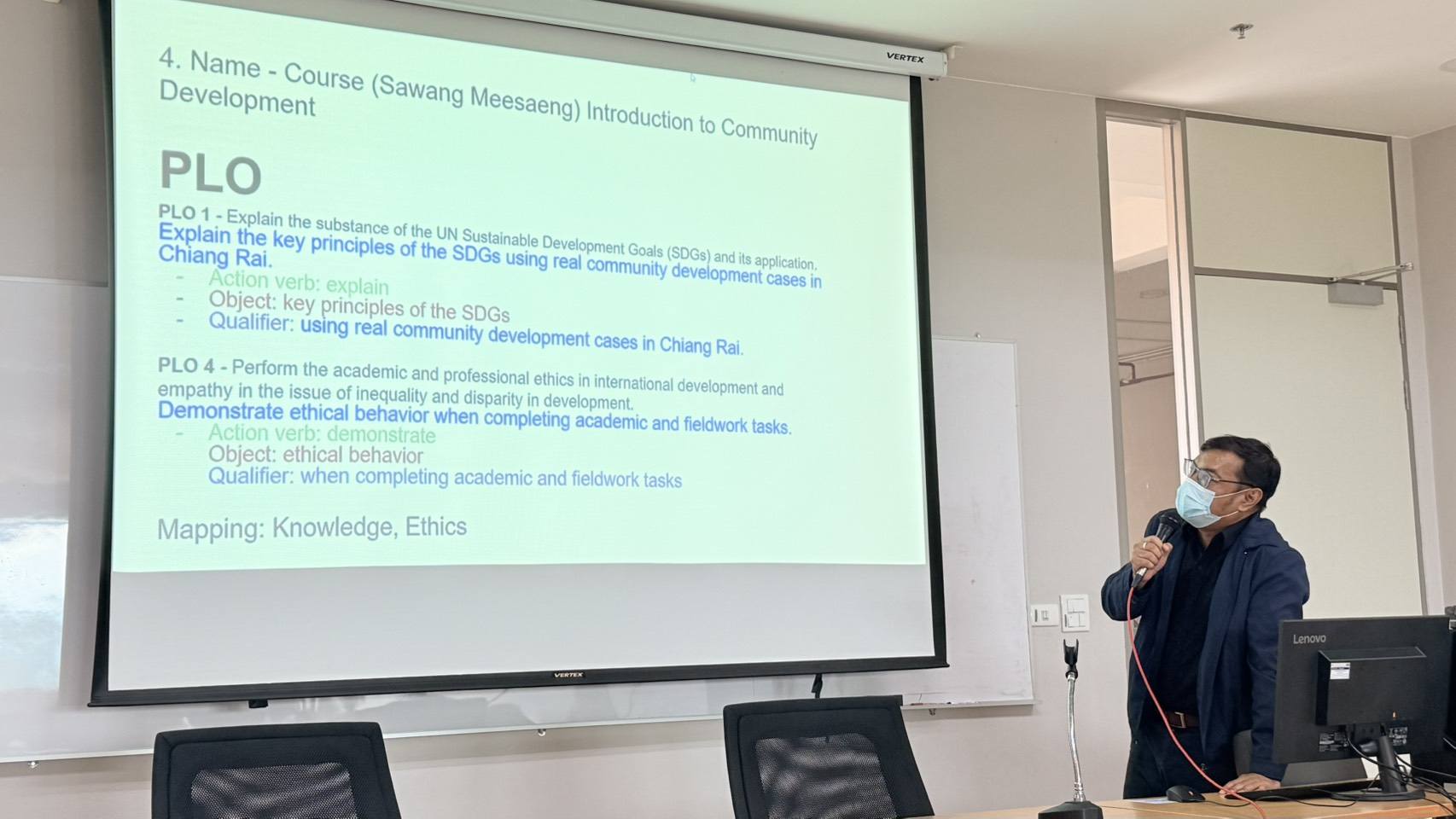 The session opened with remarks from Dr. Yuki Miyake, Head of M.A program, who highlighted why intentional, well-designed teaching matters more than ever in shaping our students’ learning journeys. This was followed by Asst. Prof. Maya Dania, Assistant Dean, who introduced the core principles of constructive alignment and discussed how clearer outcomes, meaningful activities, and purposeful assessments can genuinely improve how students engage with their courses. After that, Dr. Chalongrat Charoensri, Head of B.A program, led a detailed walkthrough of curriculum mapping and the PLO structure of the Bachelor of Arts in International Development, helping the team see how individual courses link to broader program goals.